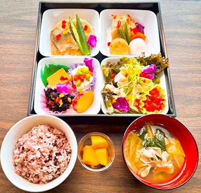 - お惣菜の盛合せ(ポテトサラダ明太子・ひじき煮枝豆・さつまいも甘露煮・厚焼き玉子)